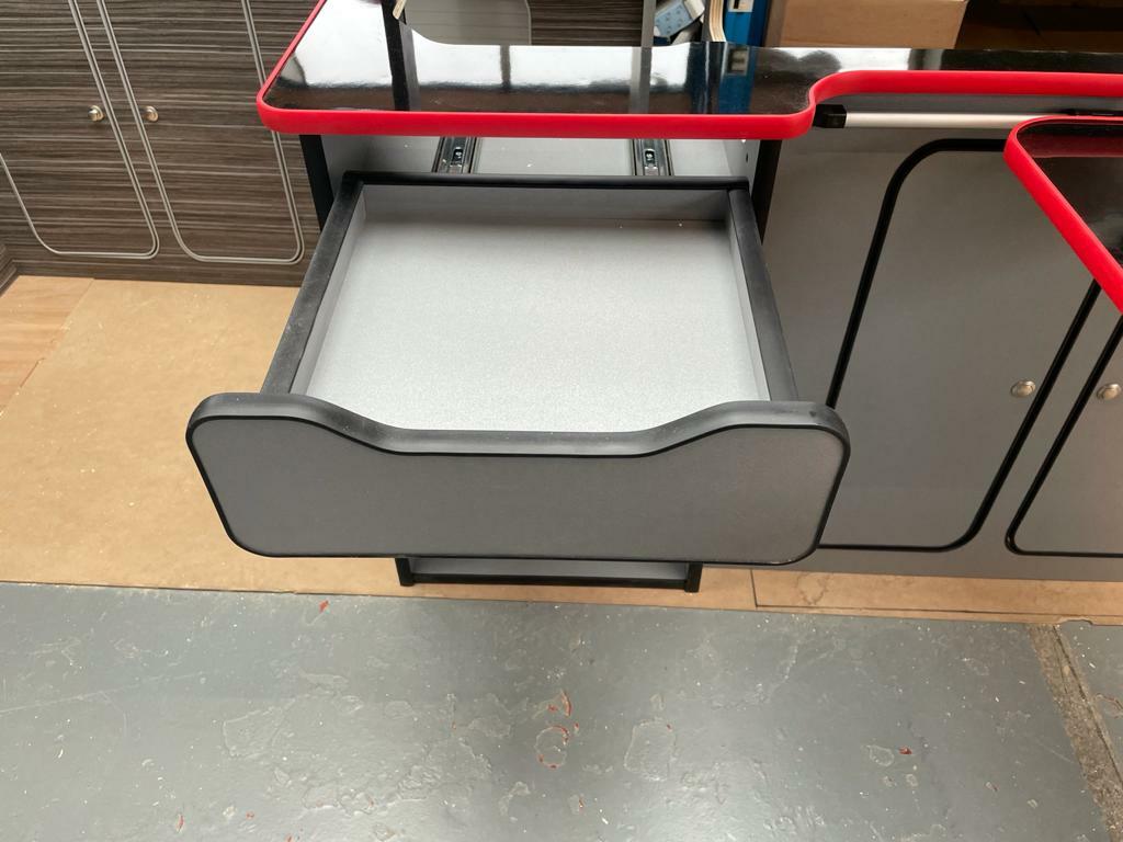 We sell this furniture unit in this style and design to fit SWB Ford Transit Custom, Vauxhall Vivaro, Renault Trafic (old and new shapes) and Merc Vito.