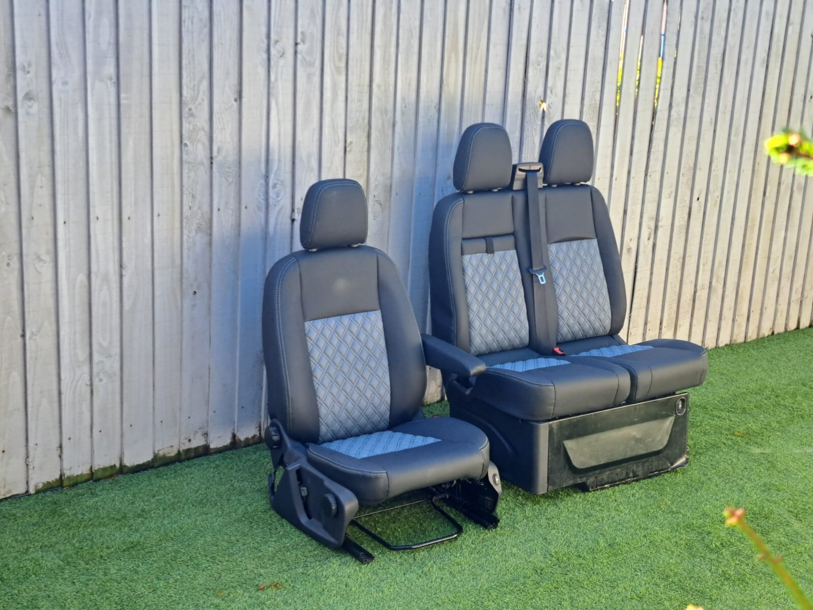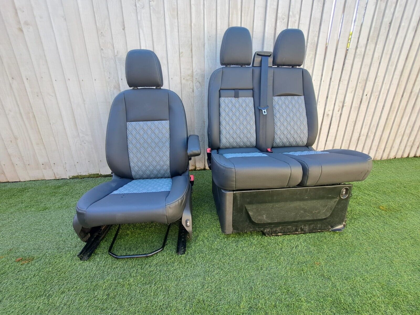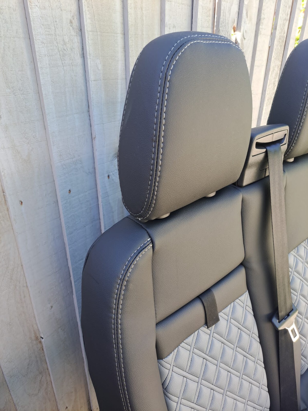 Ford Transit Custom Fully 2+1 Matching Front Seats Twin Stitch No Piping Black with Grey Bentley Diamond stitching