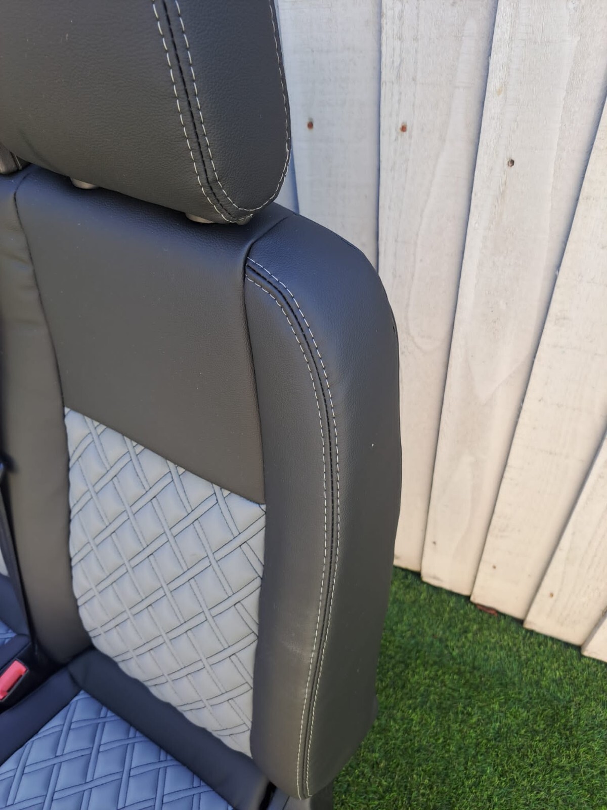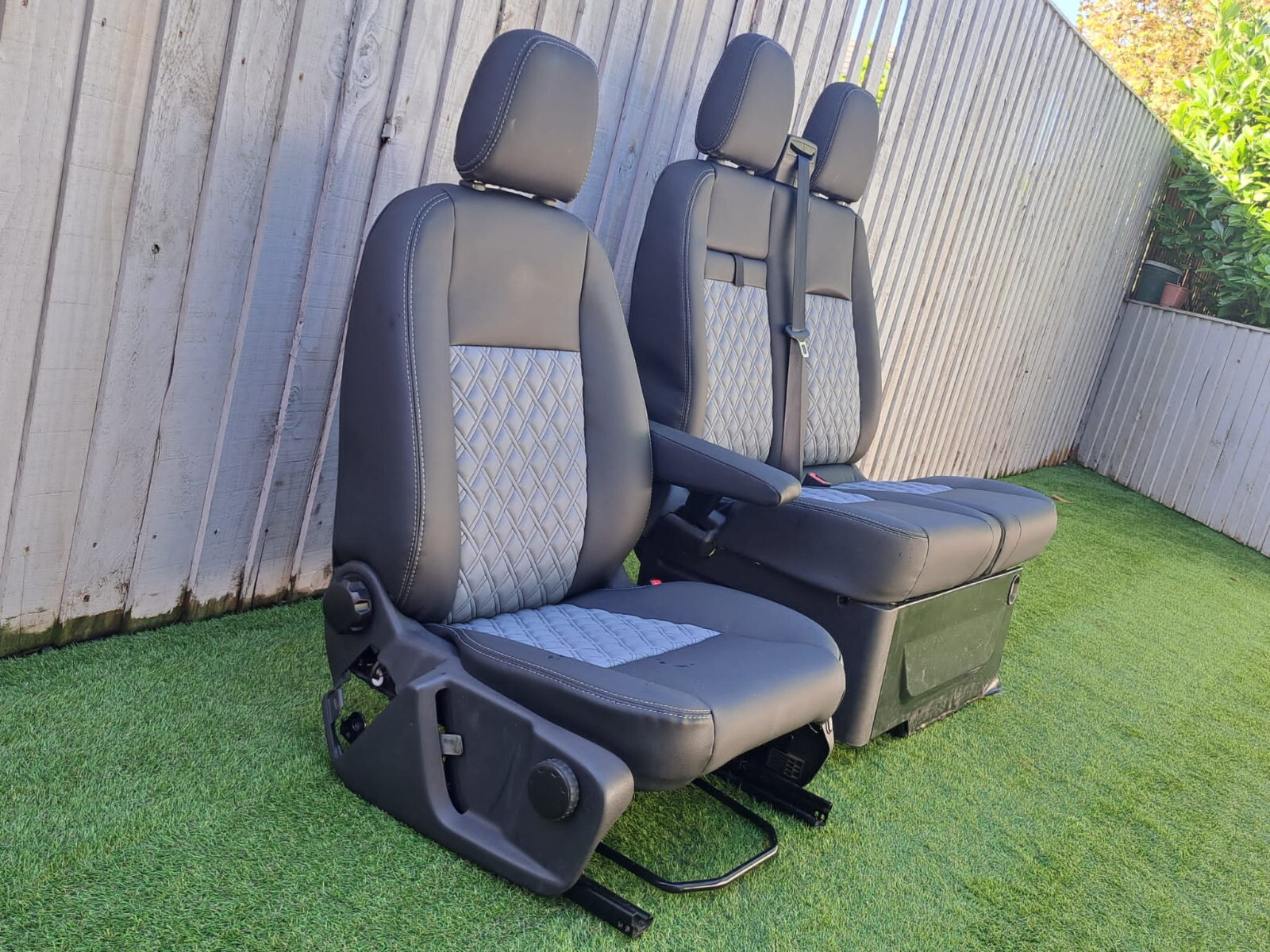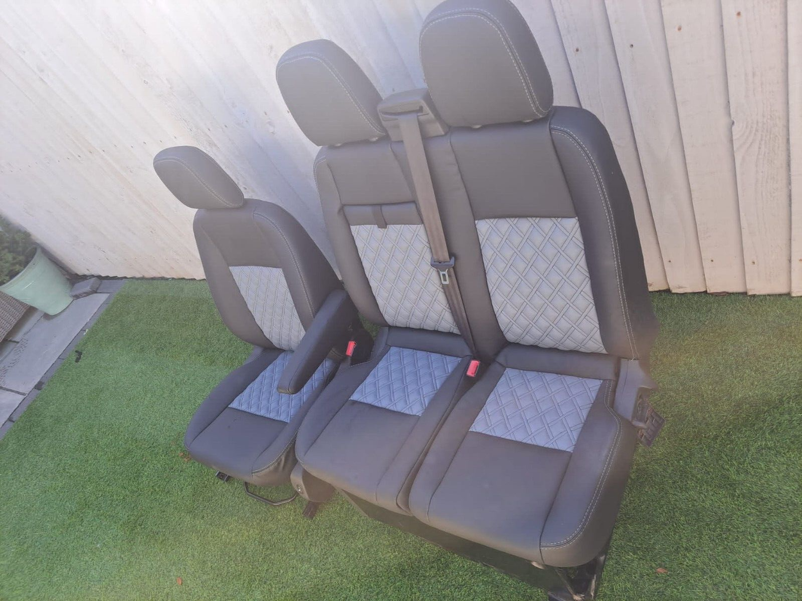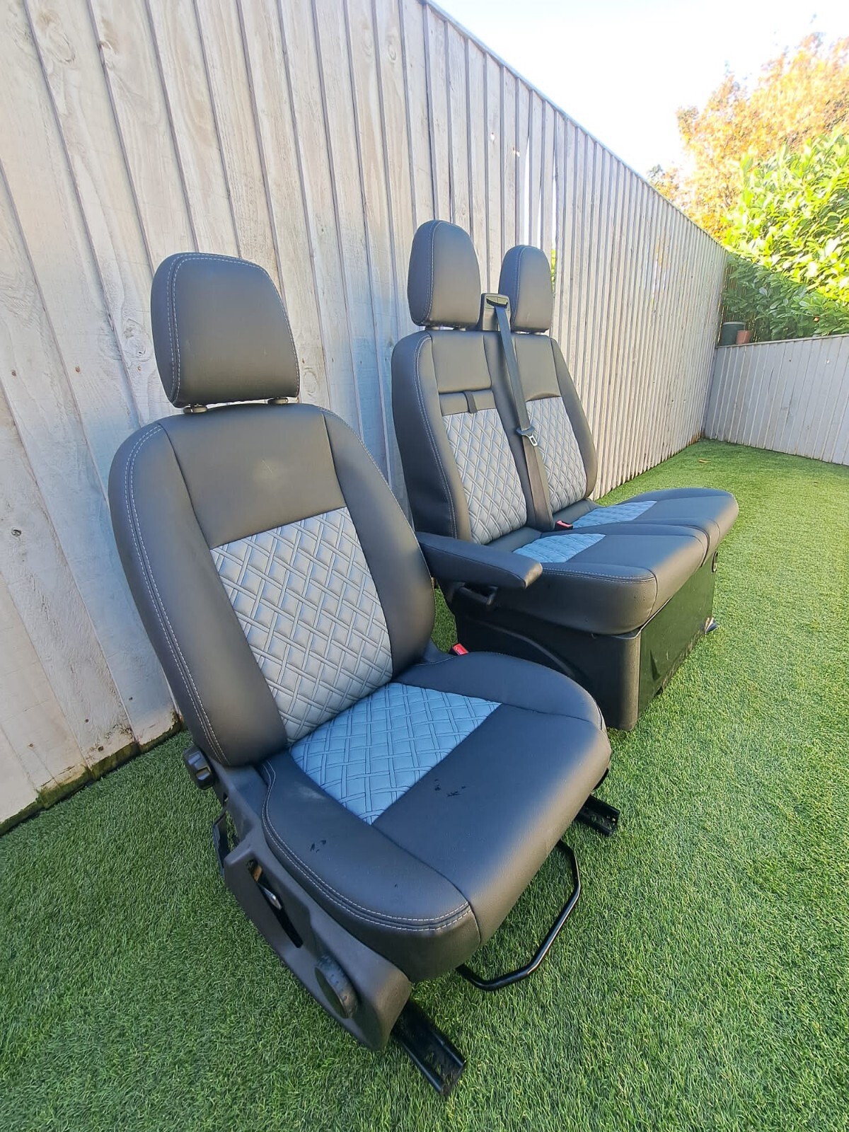 Ford Transit Custom Fully 2+1 Matching Front Seats Twin Stitch No Piping Black with Grey Bentley Diamond stitching