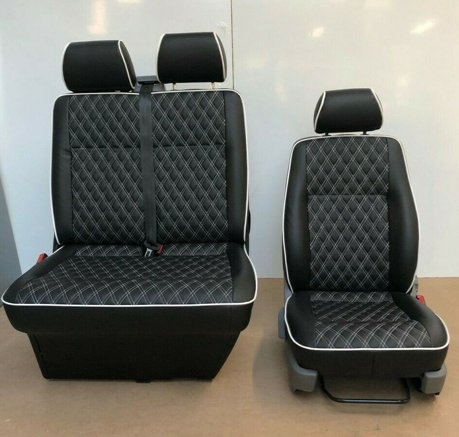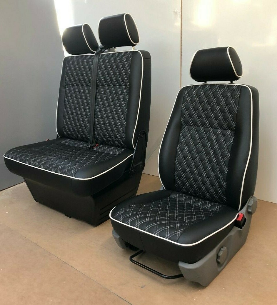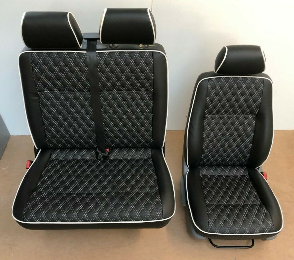 Premium VW T5 T6 Bentley Style Fully Upholstered 2+1 Matching Front Seats Piping