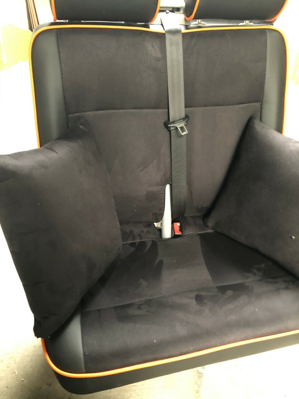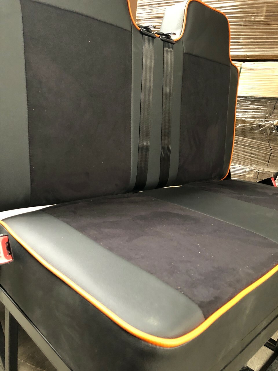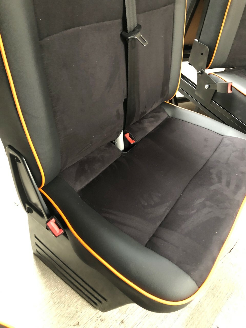 PREMIUM Rock & Roll bed with matching front 2+1 seats offered exclusively by Lusso Campers. Please quote BLACK ALCANTARA when ordering. We can make these in any colour you want.